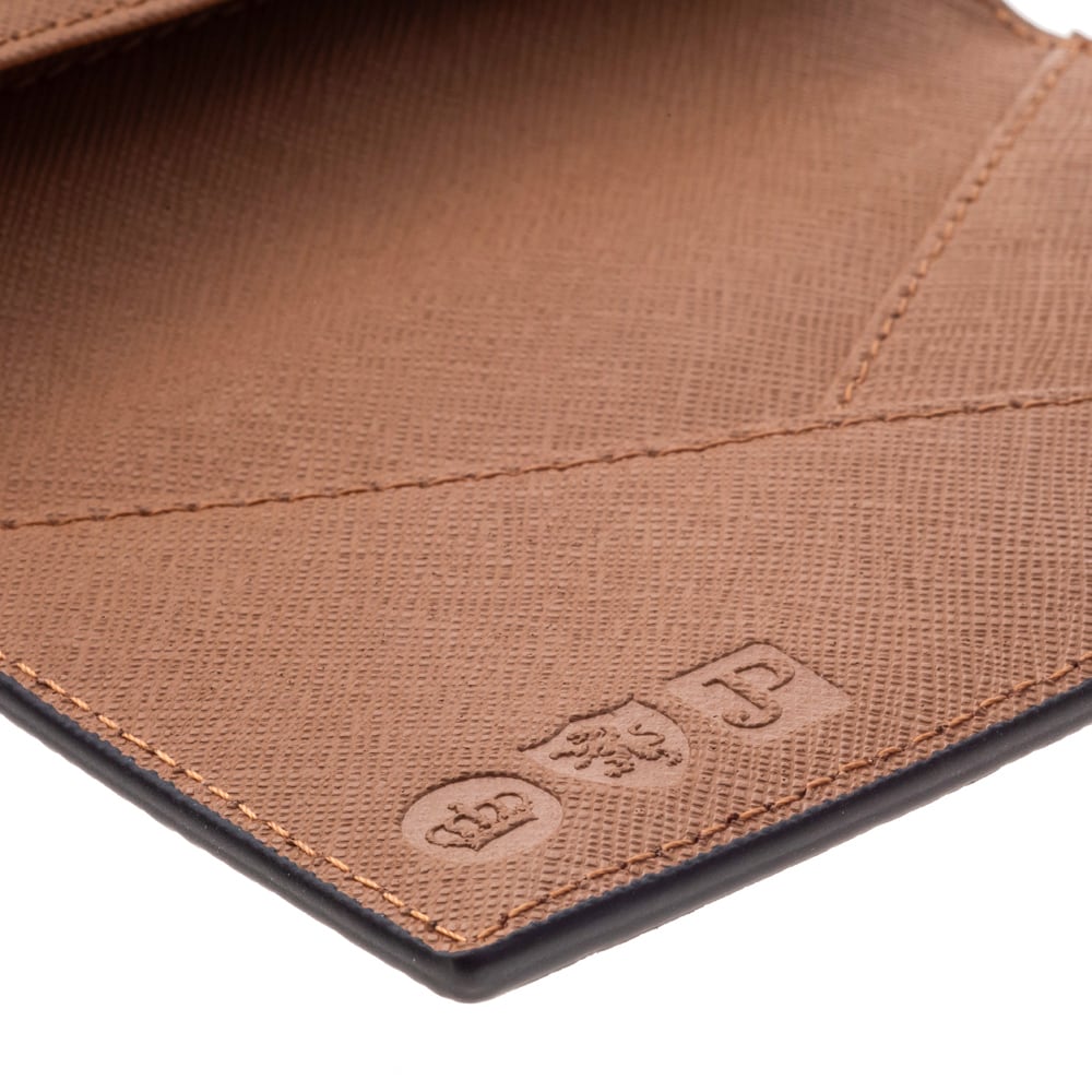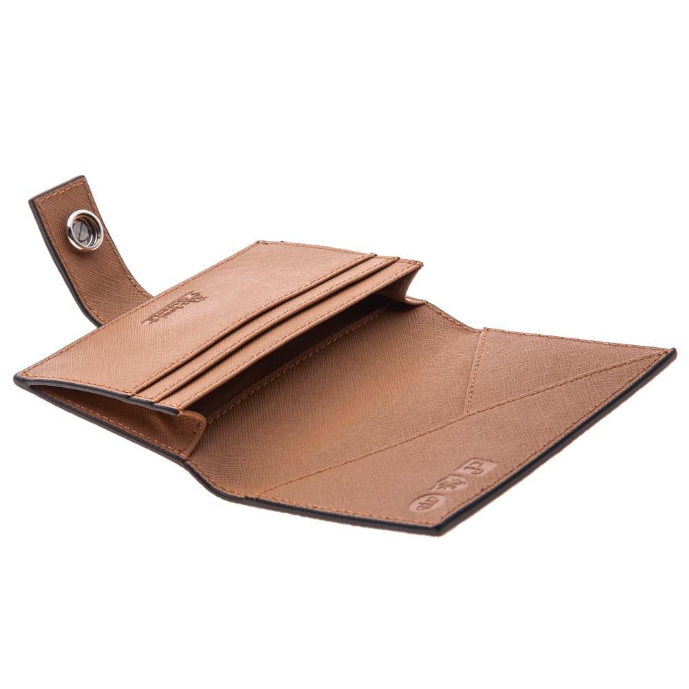 A bi-fold card case in premium cowhide, distinguished by a refined pebbled texture and a deep matte black finish. The flap closes with a square AC-monogram concho for crisp definition; outside is jet black, inside a poised beige—an elegant, high-contrast palette. An AC-monogram leather patch at the back and an interior hallmark stamp underscore the house’s exacting eye for detail. Developed under the brand’s direction and crafted one by one at our partner atelier with time-honored savoir-faire, it balances quiet luxury with everyday utility. The minimalist profile slips into tailored pockets or a leather jacket with equal ease, organizing cards with precision and aging beautifully as the leather gains a natural sheen. Unisex and gift-ready—an object of character you’ll reach for every day.