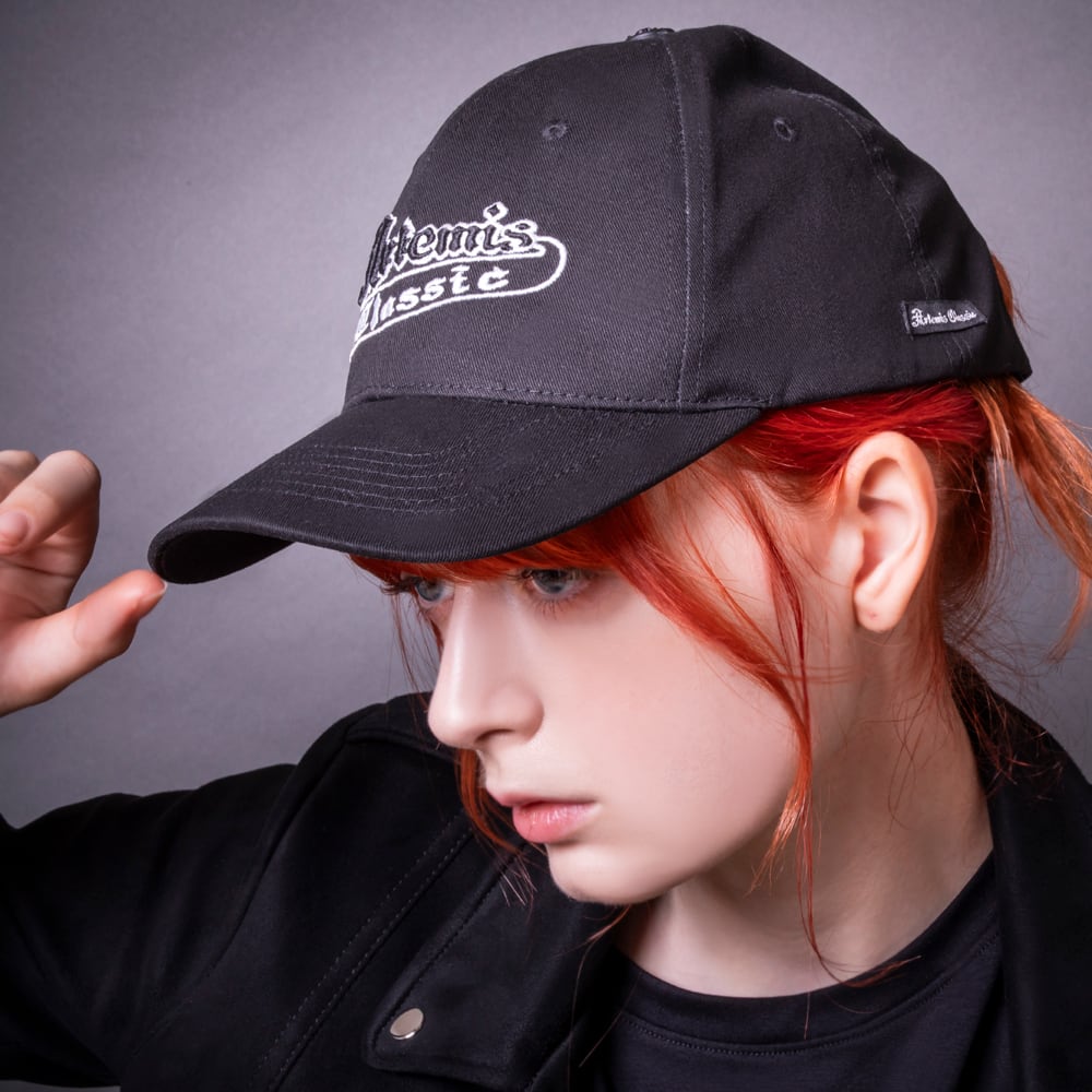 フロントにブランドロゴのリボン刺繍を配した、端正なブラックのベースボールキャップ。右サイドには透かし彫りの〈角形ACモノグラム〉メタルパーツ、左サイドには織りネーム、トップには丸型モノグラム・コンチョを据え、360°どこから見ても美しい均整を描きます。程よいクラウンの高さとバランスのよいツバが横顔まで洗練。深い黒のトーンにメタルの艶を重ね、上質な遊び心と品格をひとつに。ブランドのディレクションを受け、提携工房で職人が丹念に仕立てたこだわりのアート作品です。装いを格上げし、ジュエリーとのレイヤードも抜群。日常にも旅にも、装いの“仕上げ”として活躍。ユニセックスで、贈り物にも最適です。