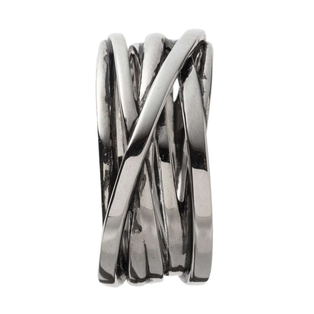 Multiple flowing lines overlap to sketch soft light and shadow across your finger. High-polish SV925 catches and returns layered brilliance from every angle, while slender, interlaced bands add a crisp, architectural presence. Though visually substantial, the inner profile is smoothly rounded; a gentle taper refines the finger line and makes the ring surprisingly lightweight and comfortable.