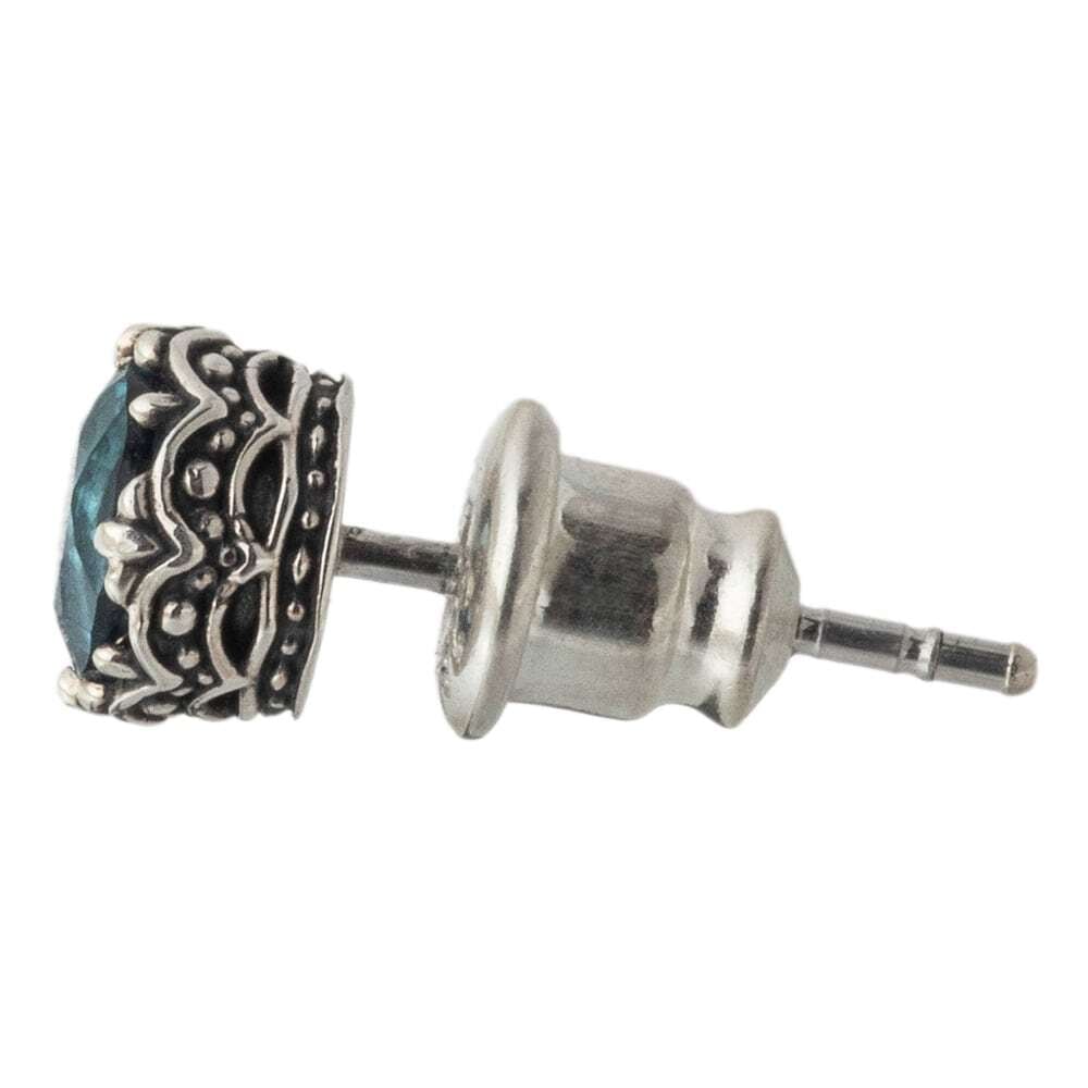 This minimalist single-stone earring features a brilliant-cut natural gemstone set in a crown-shaped bezel.