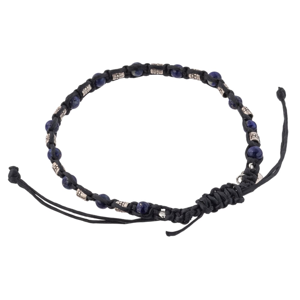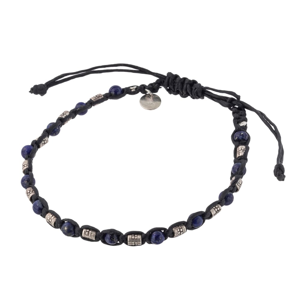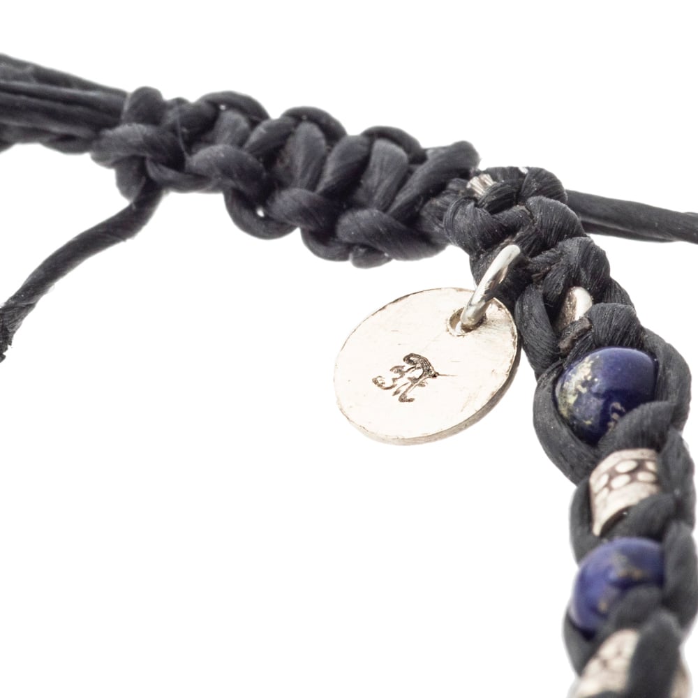 ワックスコードで天然ラピスラズリとシルバービーズを編みこんだシンプルブレス。服装も合わせやすい、ユニセックス細めのシングル巻きブレス。藍色石のブレスは、腕元を凛とし洗練された雰囲気にします。アジャスターが付いているので長さの調節も可能。アルテミスクラシックの刻印入りシルバーチップがあしらわれます。