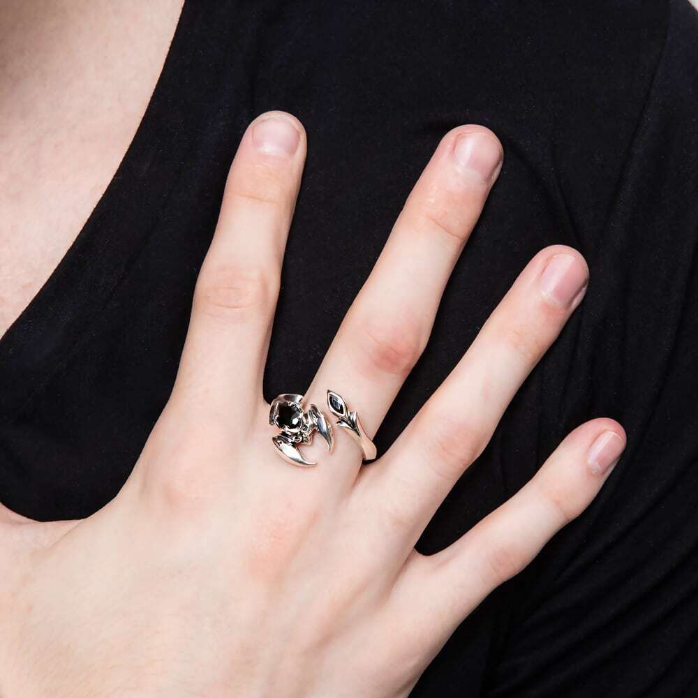 A limited-edition version of the Poison Scorpion Ring, customized with a single birthstone set as a highlight on the scorpion’s back and engraved with “LTD” and a serial number to signify its limited status. The motif wraps around the finger, creating a freely adjustable fit. The refined silhouette is brought into sharp focus by the mirror-polished shine of SV925 silver and deliberately placed oxidized accents that enhance its three-dimensional presence.