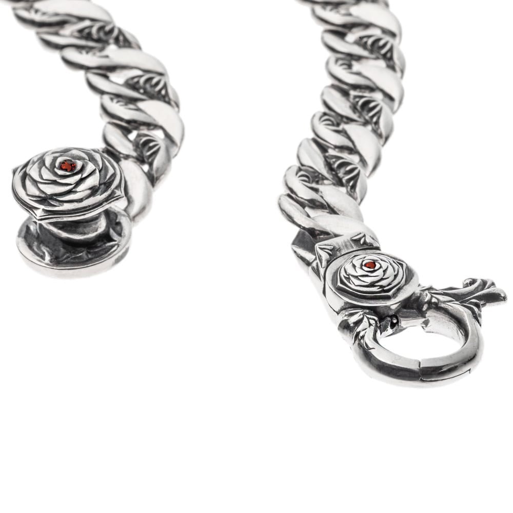 薔薇を象ったナスカンは、着脱のひと動作までも優雅に見せるディテール。手首に沿う緩やかなカーブで心地よくフィットし、適度なボリュームと確かな重量感で、一本でもスタイルの主役になります。ディレクションはブランド、仕立ては匠の手仕事。日常から特別なシーンまで装いを格上げし、誕生石の物語性が、大切な人へのギフトにもふさわしい一本です。