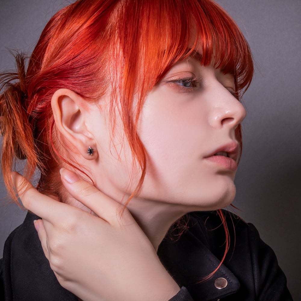 凝縮された光を一滴、耳元に。フルール・ド・リスを組み合わせたクロスモチーフが四方に伸び、中心のプリンセスカット〈CZブラック〉を鋭く掲げるスタッドピアス。黒石が光を吸うような深い艶が、控えめな輝きで耳元を凛と引き締めます。銀の艶と繊細な溝彫りがコントラスト豊かな陰影を生み、正面は端正、斜めからは立体が際立つ計算されたプロポーション。爪の角度や石座の厚みまで緻密に設計したデザイン。キャッチは滑らかな着脱と安定感を両立し、デイリーに快適。ブランドの意匠を忠実に、提携アトリエが精緻に仕立てた一作です。さりげなくも確かな存在感で、装いを一段引き上げる一品。