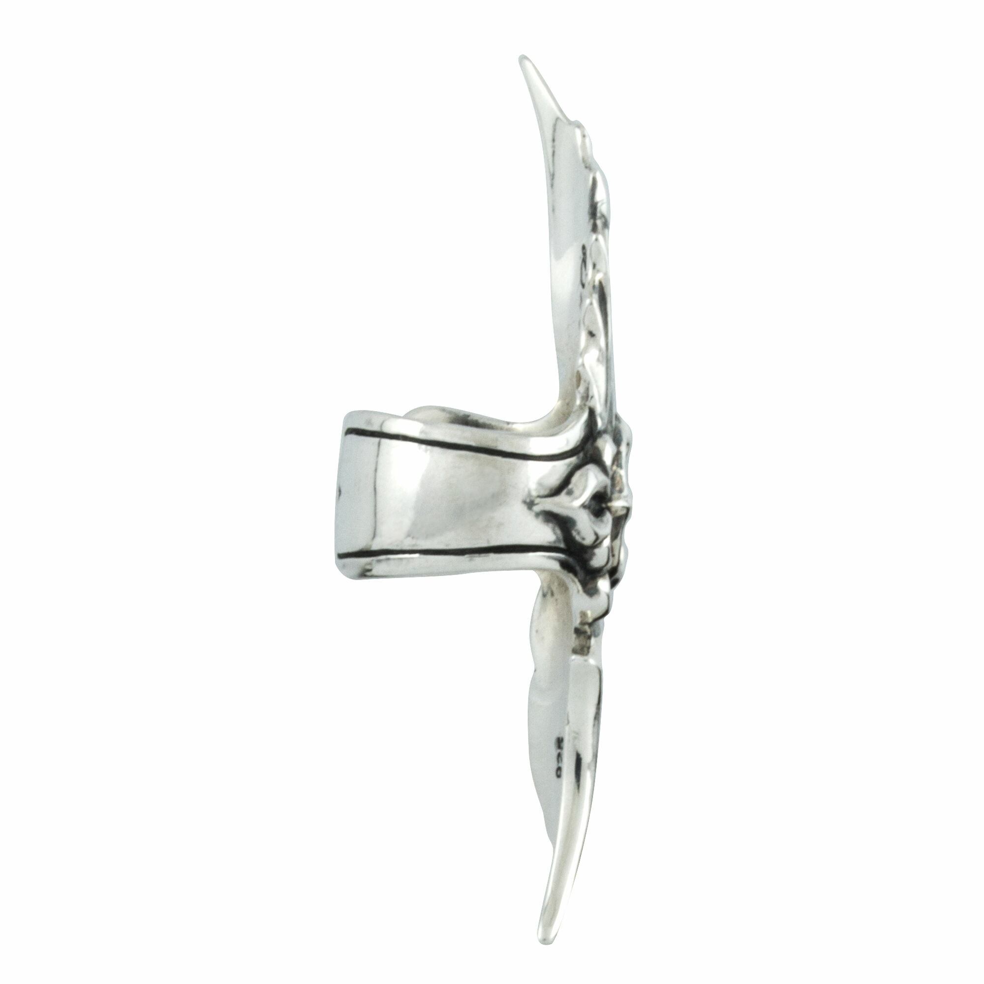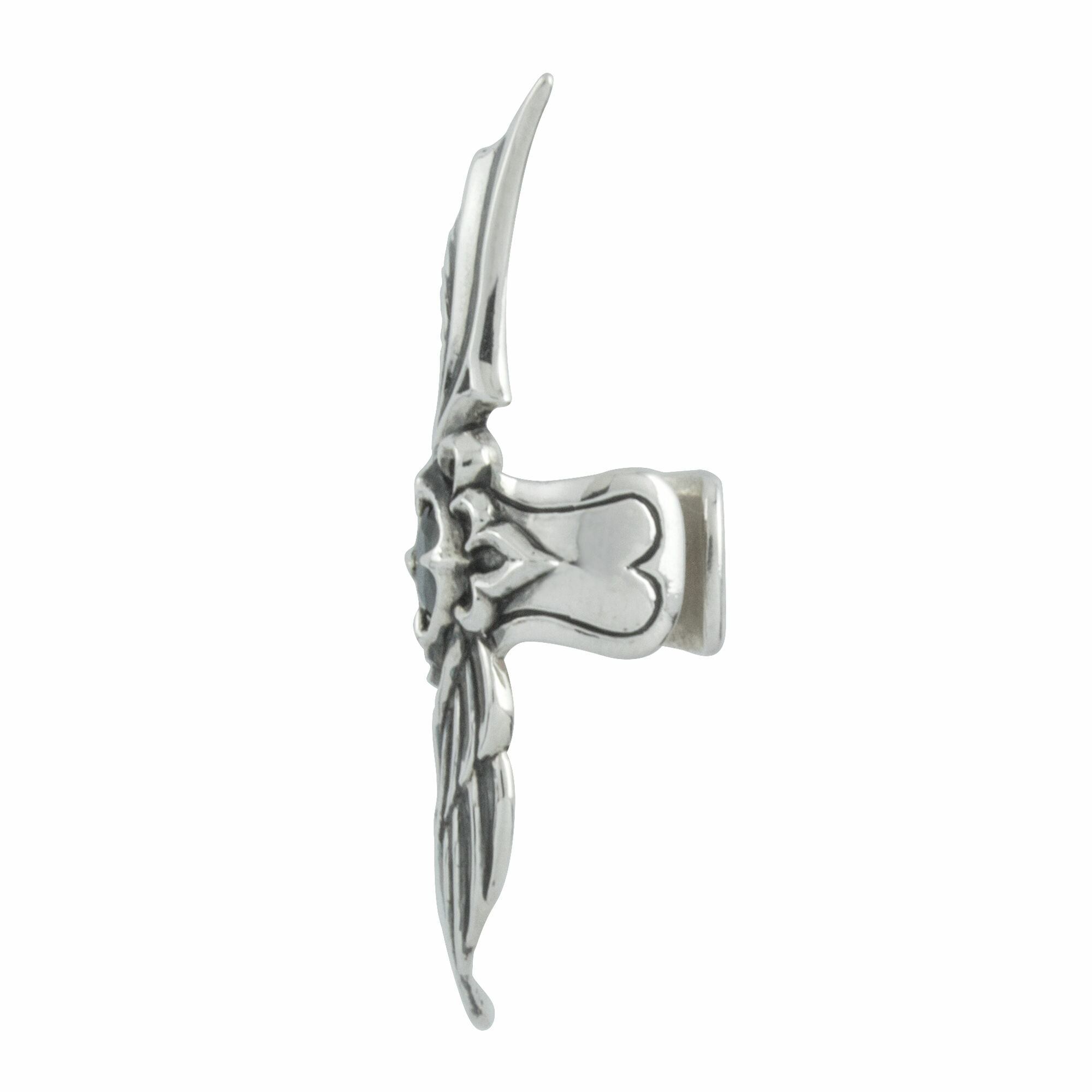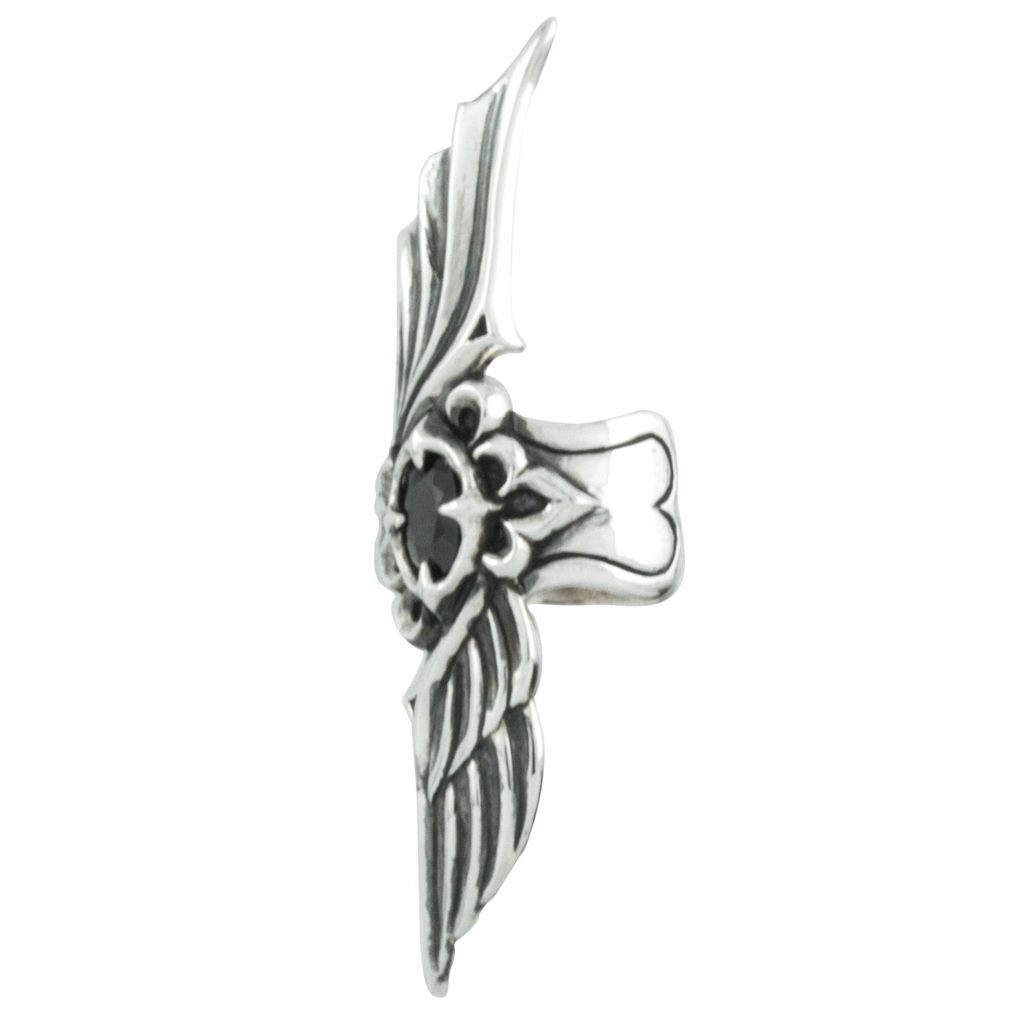 イヤーカフから悪魔の翼と天使の翼を広げたデザイン。シャープでエッジの利いたシルエット。トリッキーな変形デザインイヤーカフ。イヤーカフはピアスのようにホールをあける必要もなく、耳に挟むだけで簡単に装着でき、耳元をお洒落に魅せてくれます。翼モチーフは、飛躍、上昇のモチーフ。