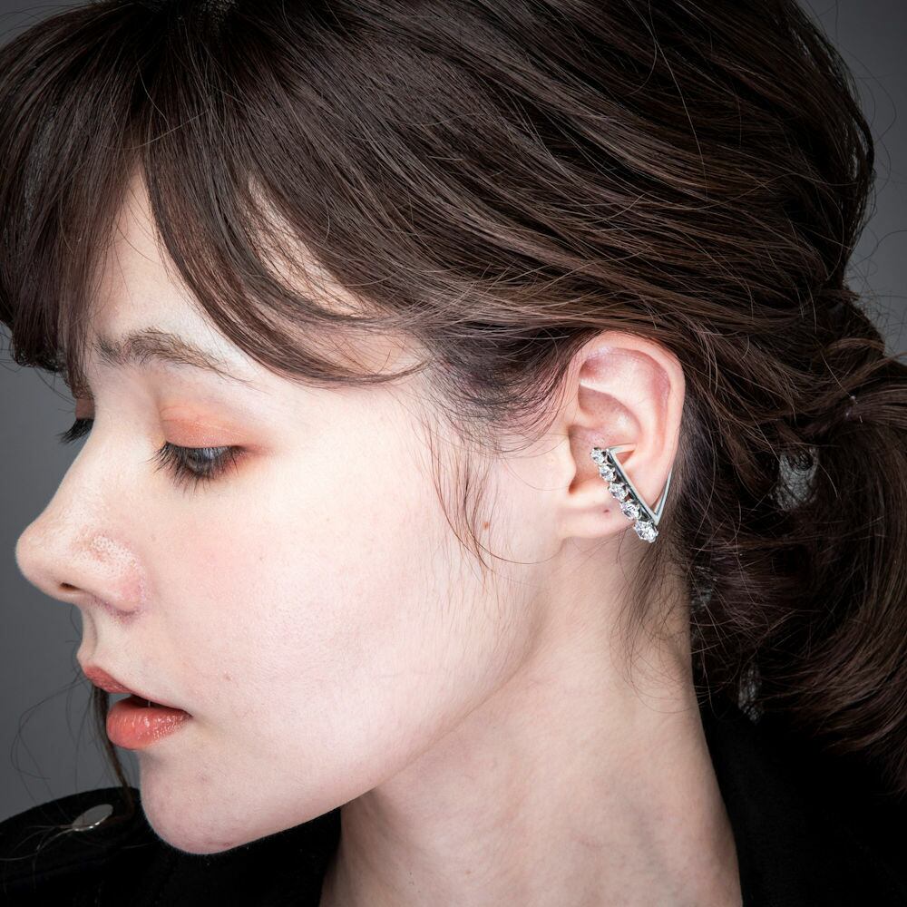 The gradation that the size of the stone changes gradually is cute. Triangular ear cuff. You don't have to make a hole like a pierced earring, you can easily put it on by just putting it in your ear. An item that is easier than earrings. You can stack as many as you like, or just one is cute. Ear cuffs that can be enjoyed by both ladies and men. W name with Eleanor Jewelery.
